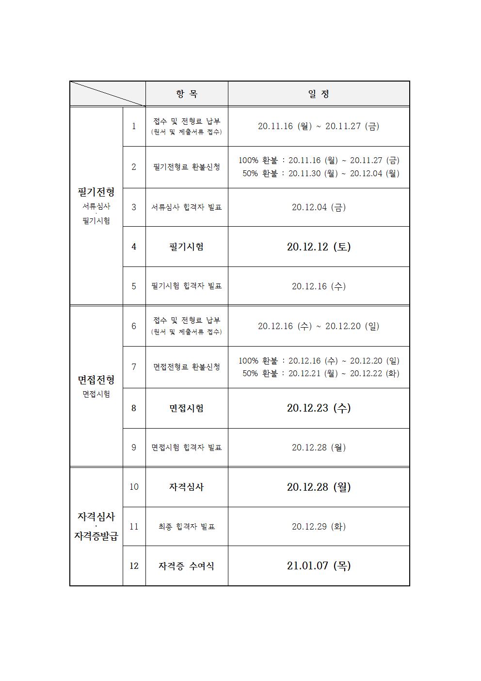 2020년도 제4회 인문상담사 자격검정 일정을 다음과 같이 공고 합니다.