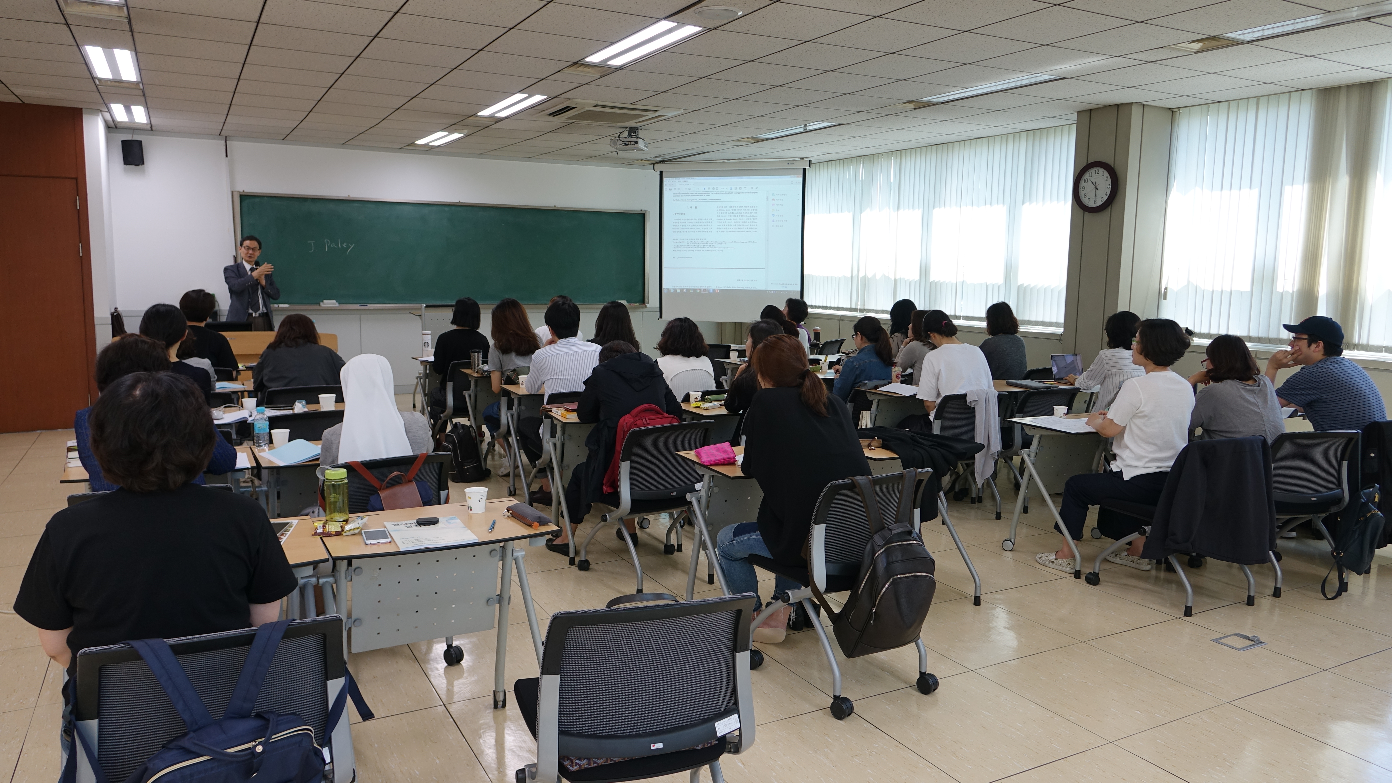 본교 인문상담학연구소는 지난 5월 19일(10시~17시)에 이남인 교수를 모시고 <현상학과 질적연구>라는 제목으로 질적연구 워크숍을 진행하였다. 본 워크숍는 지난 10일 진행된 콜로키움 <현대의 위기와 현상학의 이념>에 이어 기획된 것으로 1교시 기존의 질적 연구 논문 검토, 2교시 현상학의 근본개념과 현상학적 방법, 3교시 본질적 현상학적 체험연구의 방법 및 절차, 4교시 경험적 현상학적 체험연구의 방법 및 절차 순으로 진행되었다.