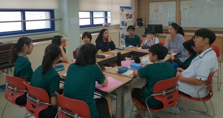 본교 석사과정생인 안주연, 정소연, 정승연은 분당 늘푸른중학교에서 9월 3일부터 10월 22일까지(7차시) 중학교 1학년 32명을 대상으로 <생각 사이-다> 리뉴얼 프로그램을 진행하였다. 참여 학생들은 인문학을 기반으로 한 상담 프로그램을 통하여 평소 무심코 지나치곤 했던 삶의 주제를 생각해볼 수 있는 색다른 기회를 가졌다. 진행리더들은 자신의 생각을 정리하는 동시에 친구들의 생각을 경험하는 과정이 학생들에게 특히 흥미로웠으며, 각 차시별 주제에 대해 생각하고 질문하는 기회가 학생들의 사고의 확장을 가져왔다고 운영 소감을 밝혔다.