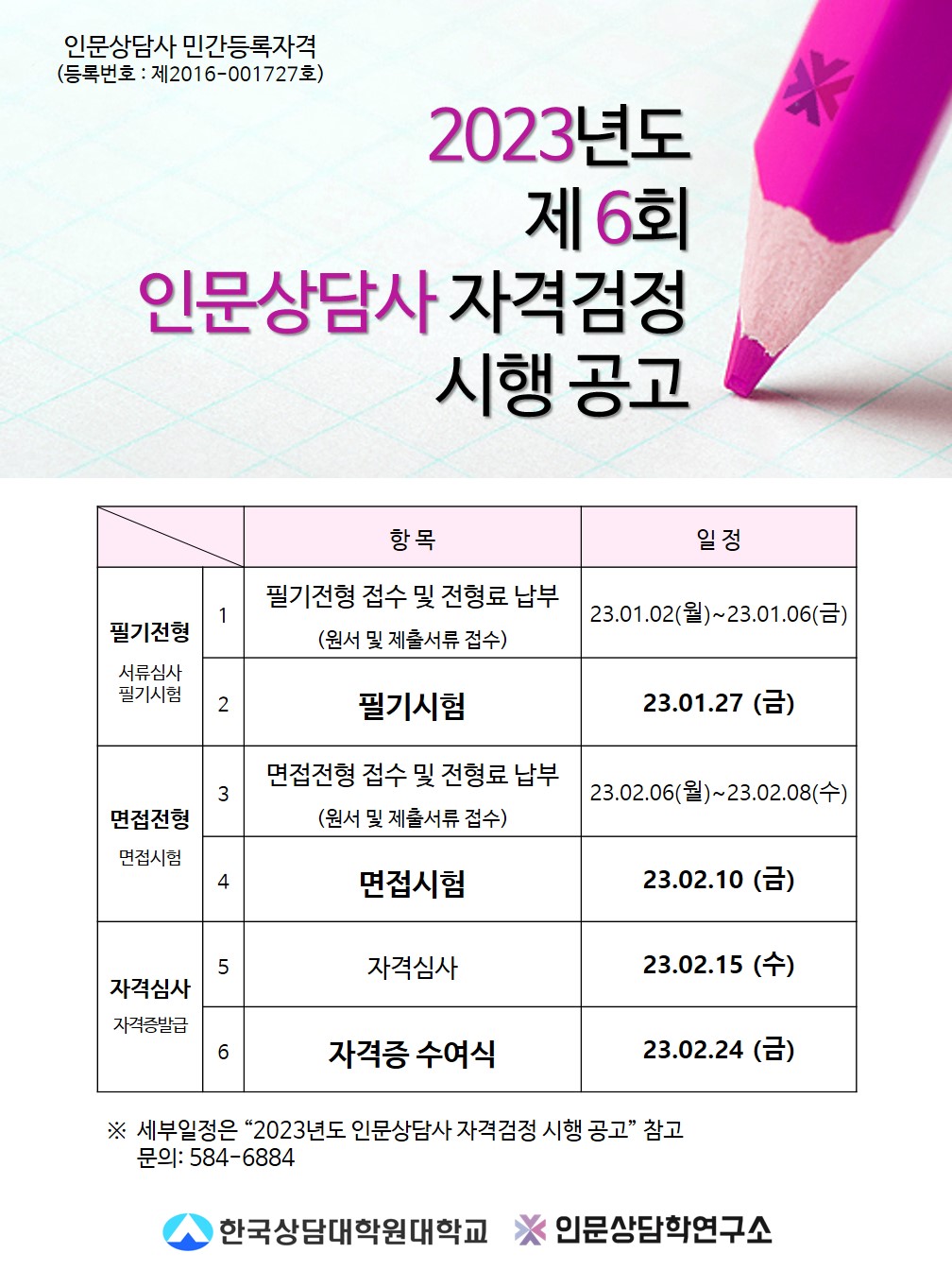 2023년도 제6회 인문상담사 자격검정은 마무리될 예정이다.