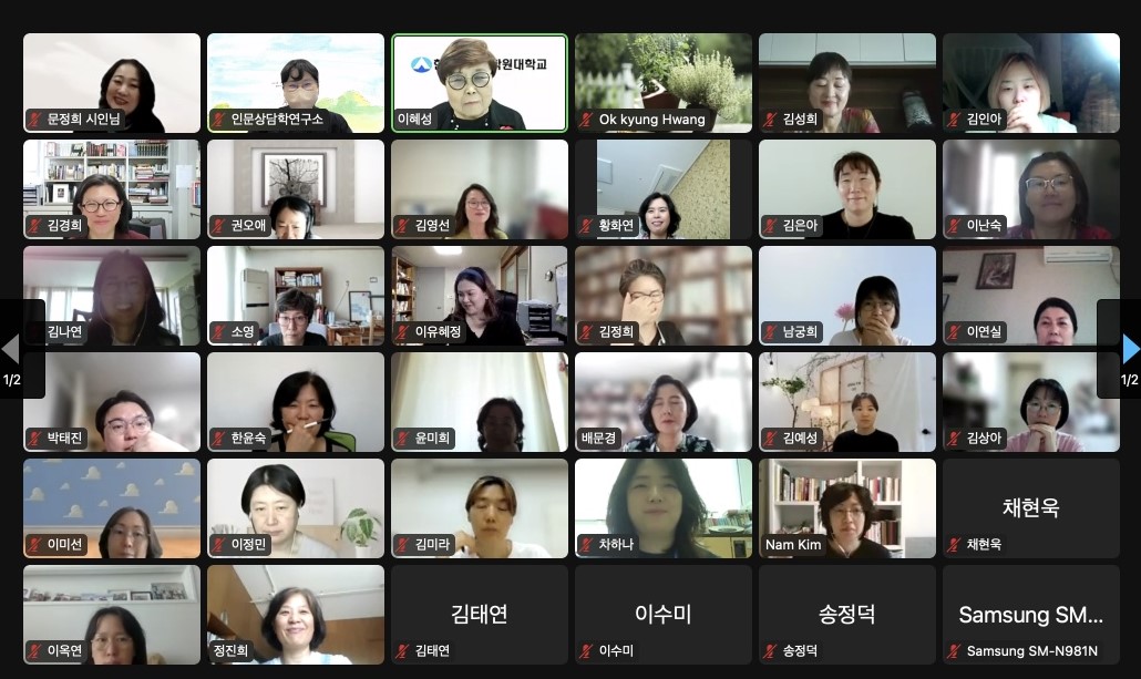 인문상담학연구소는 지난 6월 3일 개교 13주년을 맞이하여 문정희 시인(국립한국문학관장)을 모시고, 기념 특강 <문학의 도끼로 삶을 깨워라>를 진행하였다. 시(詩)와 인간 마음, 문학과 인간 삶 사이의 관계에 관심이 있는 본교 재학생 및 졸업생, 교수 및 임직원, 일반인 70여명이 온라인 공간을 진지한 열정으로 가득 채웠다.