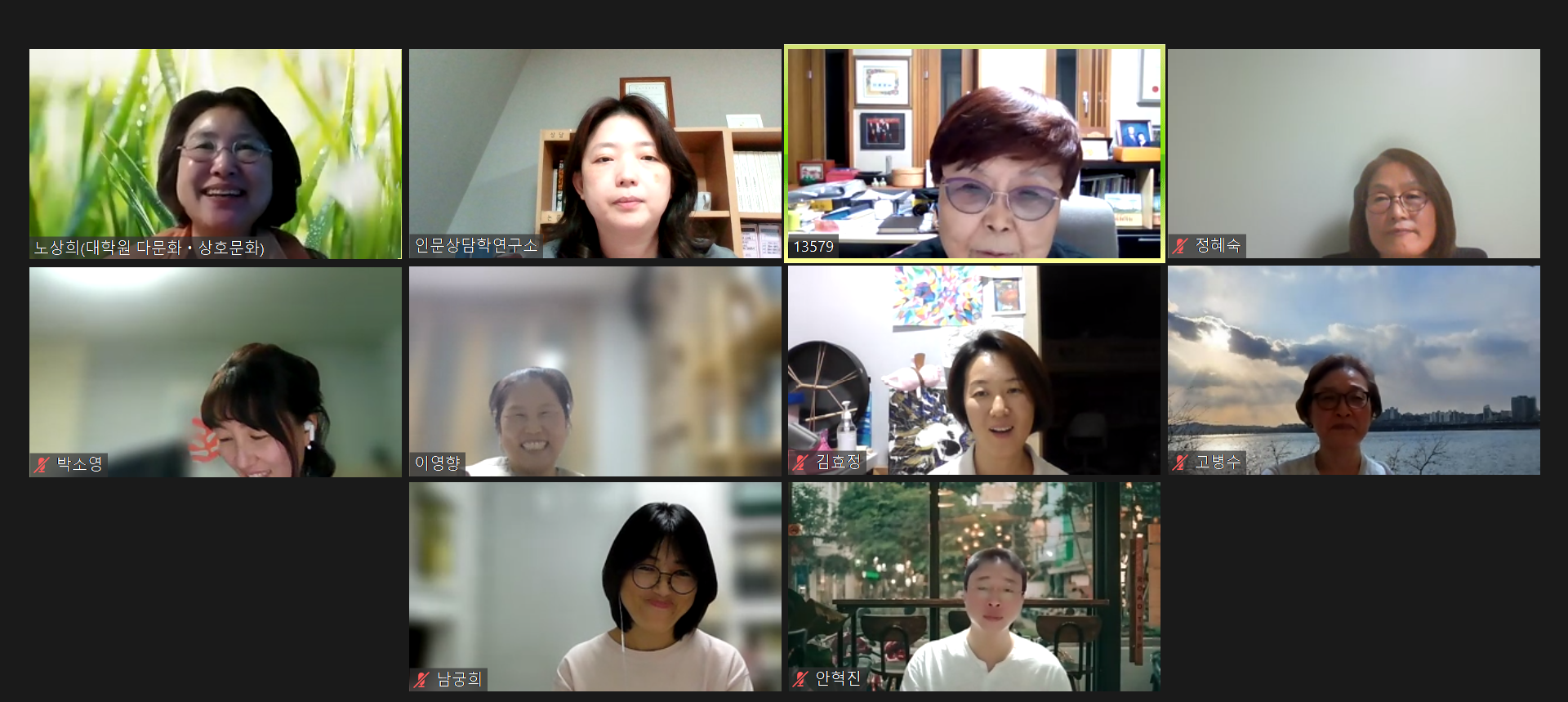 인문상담학연구소는 지난 10월 27일 금요일 저녁 7시, 知音 이혜성 총장님(인문상담사 전문가)의 총괄 진행 및 전임연구원 차하나(철학상담 박사수료/인문상담사 2급)의 안내를 바탕으로 인문상담에 관심 있는 8명의 재학생 및 졸업생과 함께 <知音과 함께하는 사계절 북클럽: 한 사람을 위한 읽기>를 온라인으로 시행하였다. 4월 봄, 7월 여름에 이어 10월 가을에 열린 이번 북클럽에서 10명의 사람이 한 권의 책을 가운데 두고 모이게 되었다는 우연적 사실은 참여자들에게 소소하지만 소중한 의미로 다가왔다. 열 사람을 엮어준 이번 ‘가을의 책’은 문화콘텐츠 플랫폼 예스24가 실시한 ‘2023 한국 문학의 미래가 될 젊은 작가’ 투표에서 가장 많은 표를 얻기도 한 이슬아 작가의 『새 마음으로』(헤엄, 2021)였다. 한 곳에서 오랜 시간 일해왔지만 가까이에 있는 주변 사람들에게조차 쉽게 주목되거나 가시화되지 않았던 이웃 어른들의 이야기를 정성스럽게 묻고 듣고 기록하는 인터뷰의 장면들은 상담자와 내담자가 때에 알맞은 촉진적 물음과 그에 대한 응답으로 서로 감응하며, 함께 자기 자신을 드러내고 성찰해나가고자 하는 인문상담의 활동 과정과 닮아있었다.