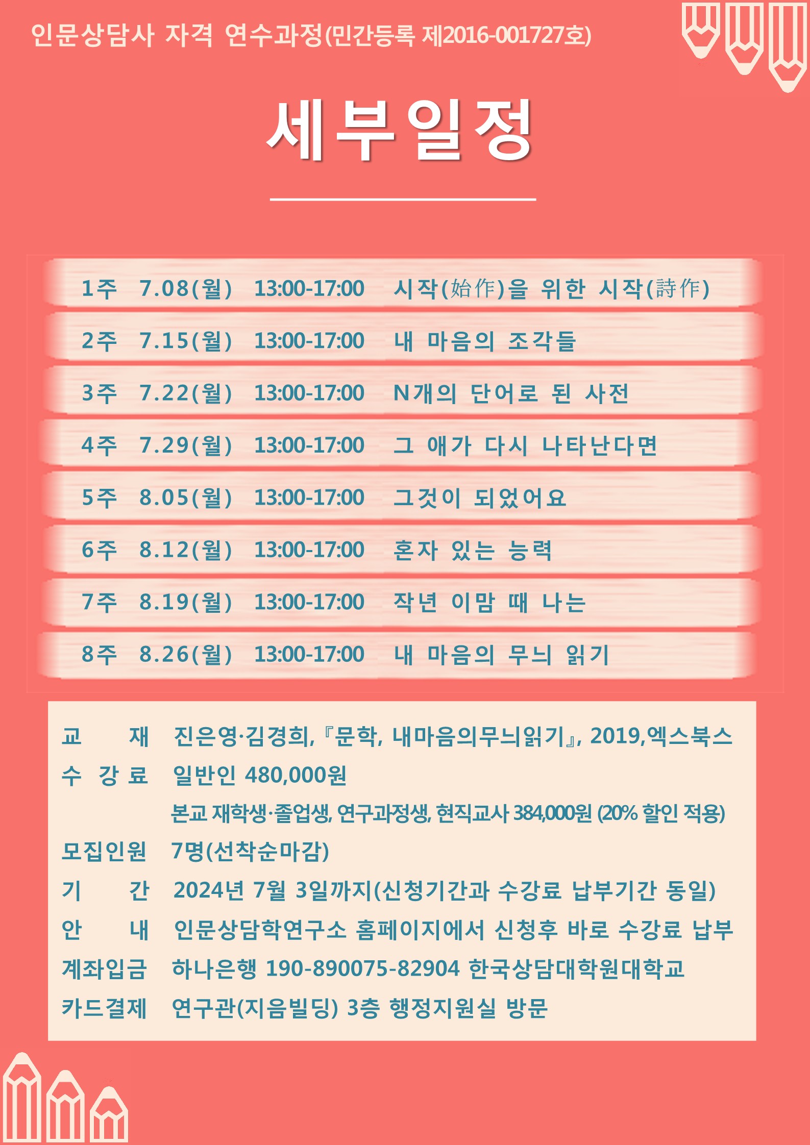 인문상담사(민간등록 제2016-001727호) 자격증을 취득하려는 분들의 많은 신청 바랍니다.