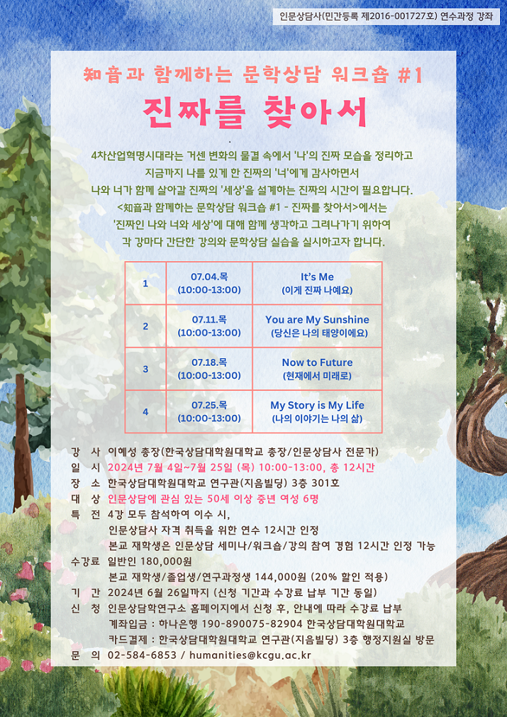 공지사항 보러 가기 한국상담대학원대학교 인문상담학연구소 (kcgu.ac.kr)