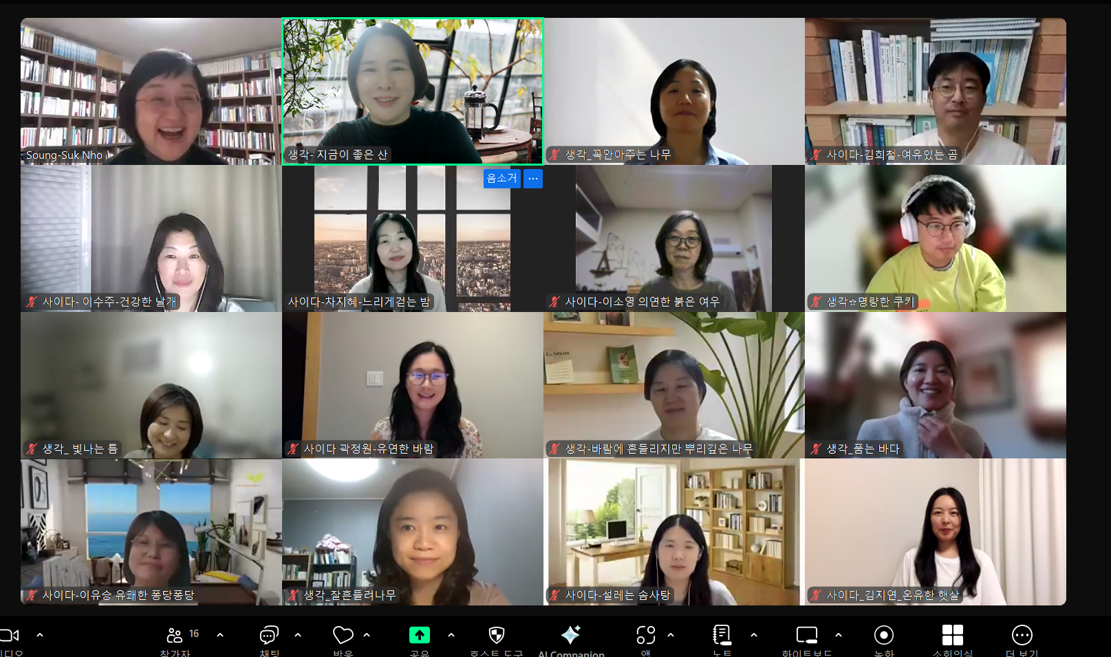 어떤 참여자들은 특수한 상황 속에서 참여했다. 멀리 집을 떠나 제주에서, 아이들의 육아를 병행하면서, 수험생 아이의 시험을 지원하면서도 화면 속 얼굴에서는 진지하게 열정적으로 참여하는 모습을 볼 수 있었다. 이러한 상황임에도 온라인으로 진행되었기에 지역과 상황의 한계를 넘어설 수 있었다.