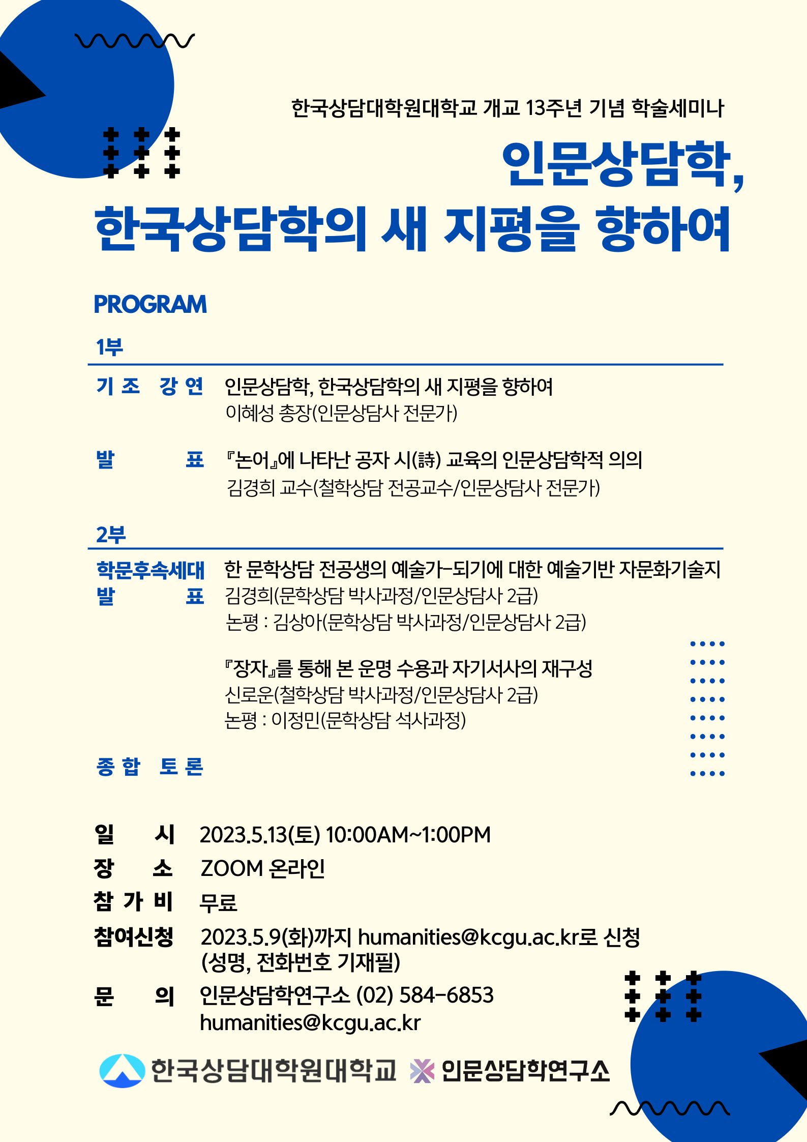 인문상담학연구소에서는 한국상담대학원대학교 개교 13주년을 맞이하여