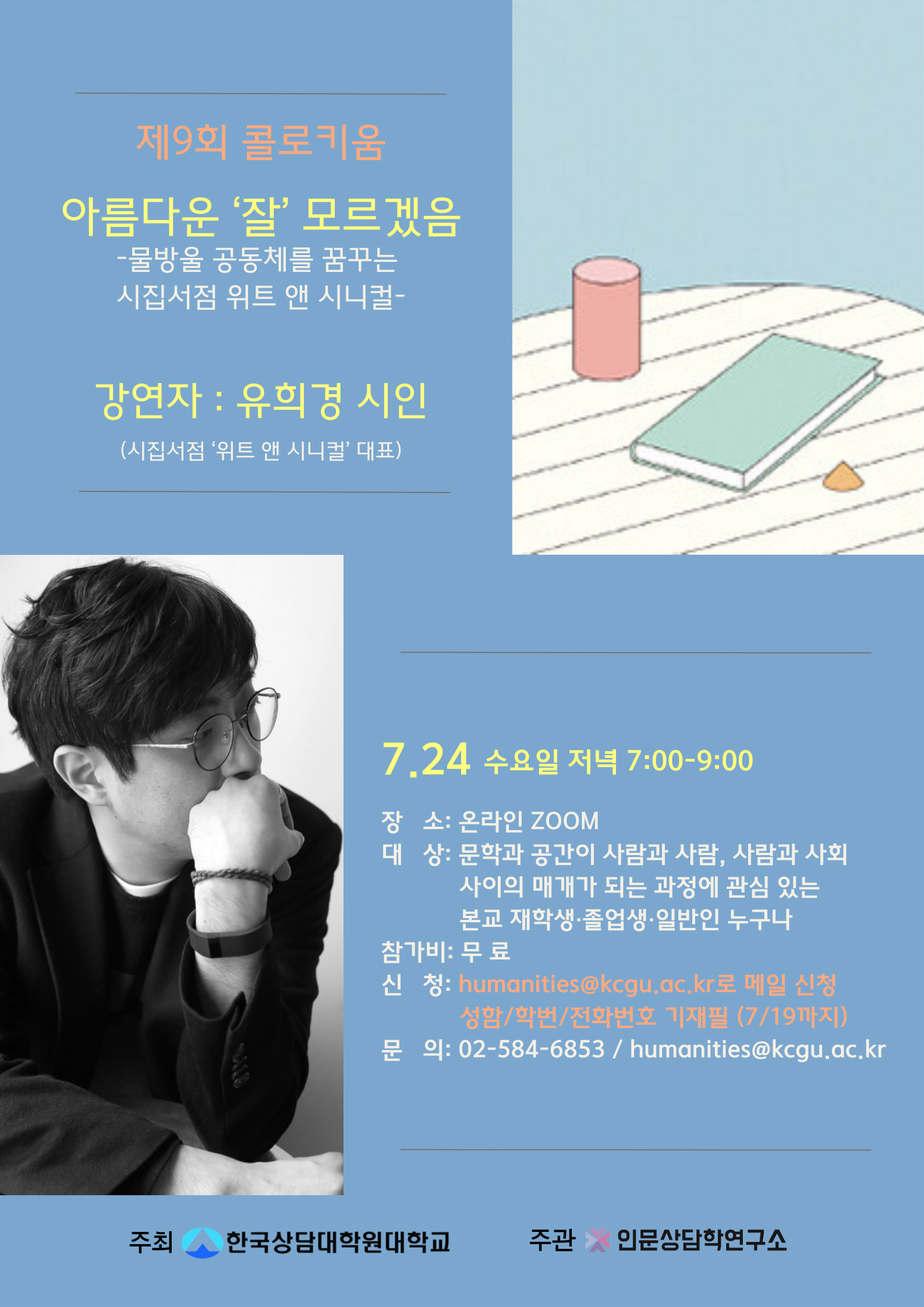 인문상담학연구소에서는 유희경 시인님(시집서점 '위트 앤 시니컬' 대표)을 모시고