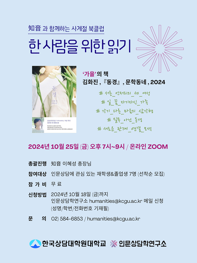 인문상담학연구소 메일 humanities@kcgu.ac.kr로 신청