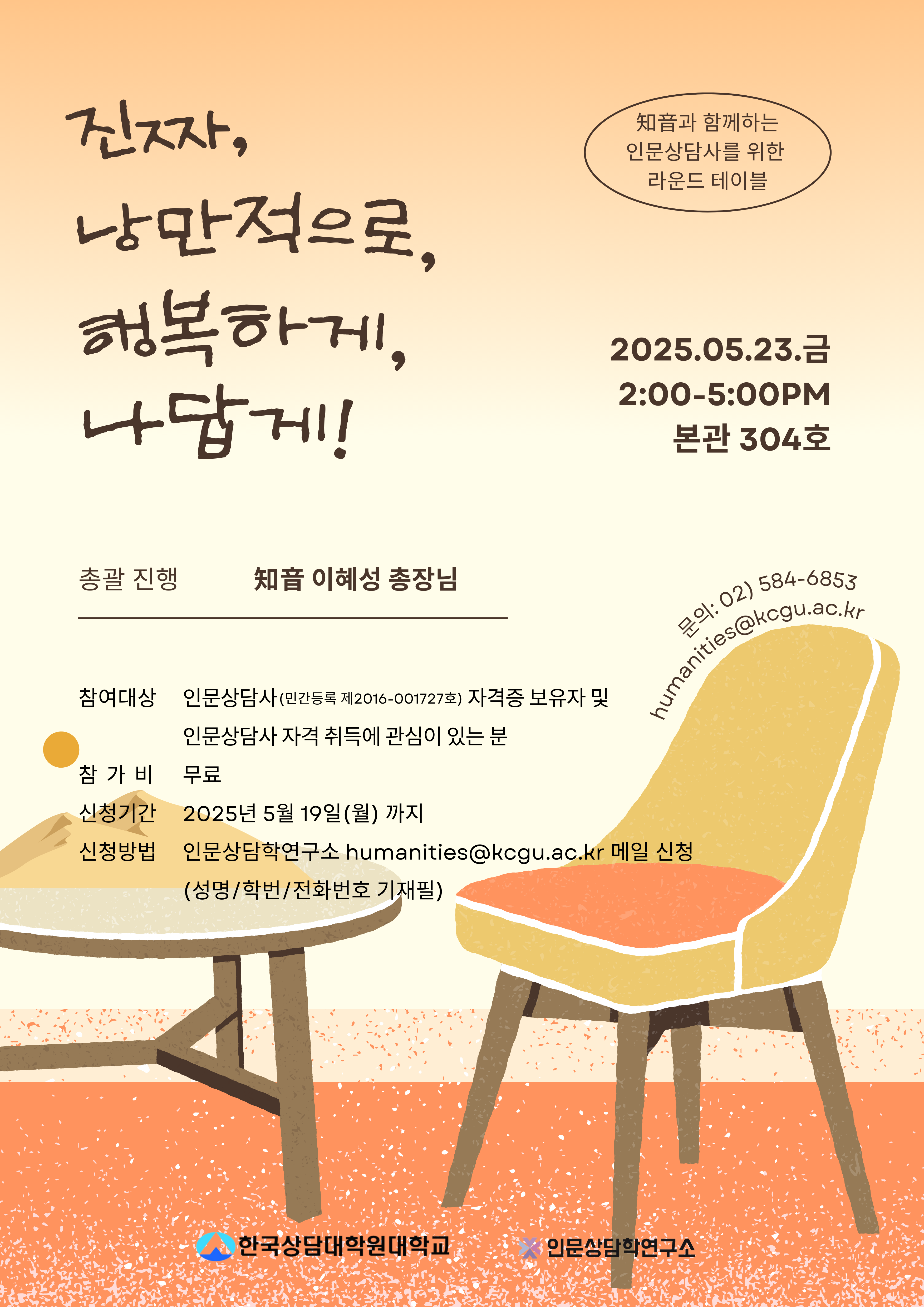 인문상담학연구소 메일 humanities@kcgu.ac.kr로 신청