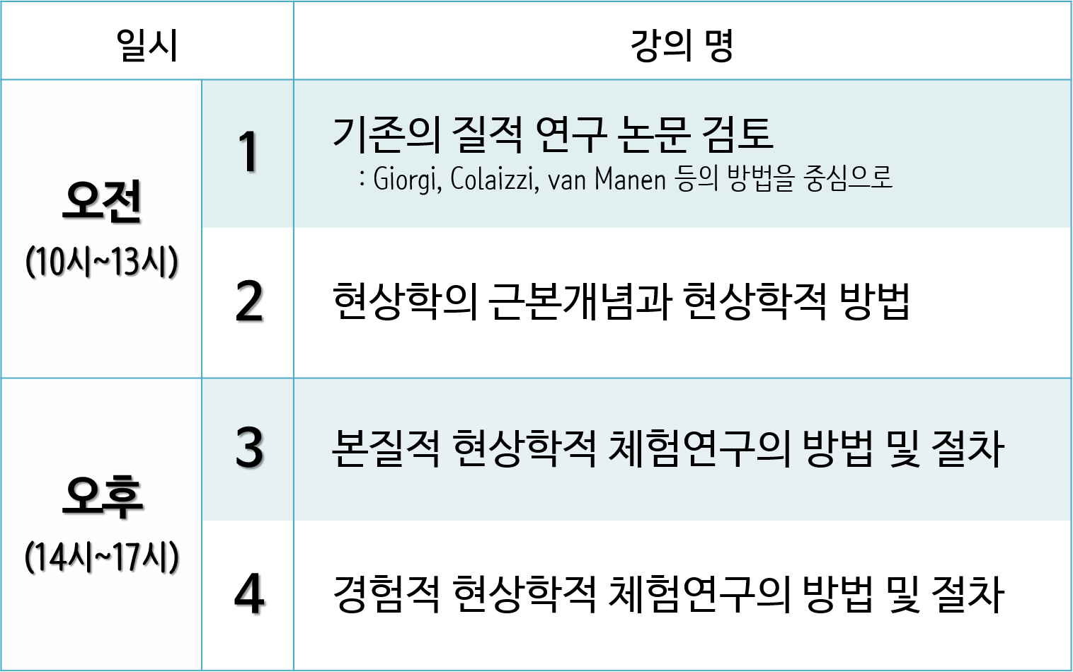 [강좌] 질적연구 워크숍 : 현상학과 질적연구